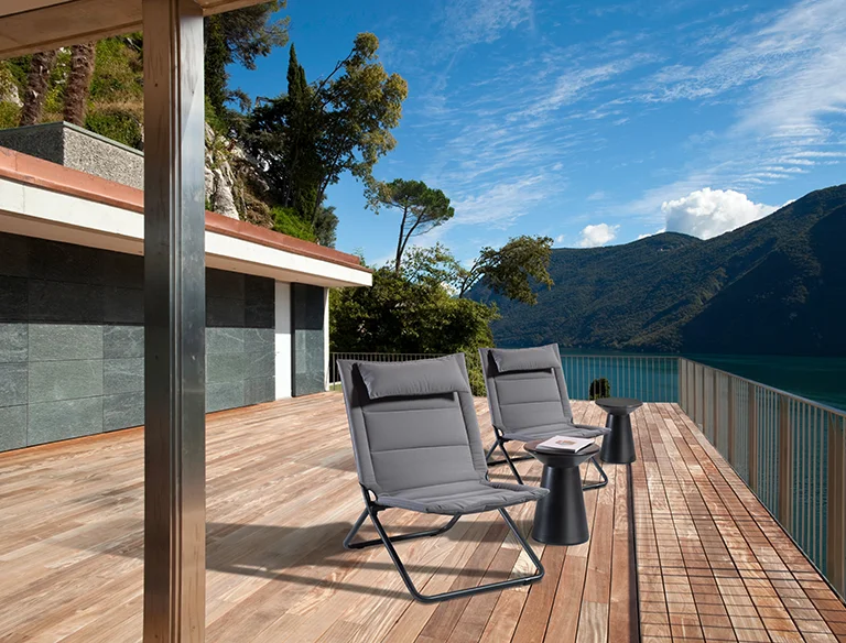 Coraline es una silla plegable de apariencia sencilla, pero capaz de ofrecer comodidad en cualquier lugar: en la playa, en el jardín, en la terraza o junto a la piscina, para relajarse cómodamente al aire libre. Su robusta estructura metálica garantiza una excelente resistencia, mientras que tanto el asiento como el respaldo se adaptan al cuerpo gracias a su cómodo cojín, equipado con reposacabezas. Esta ligera silla plegable facilita su almacenamiento y transporte, a un coste mínimo.