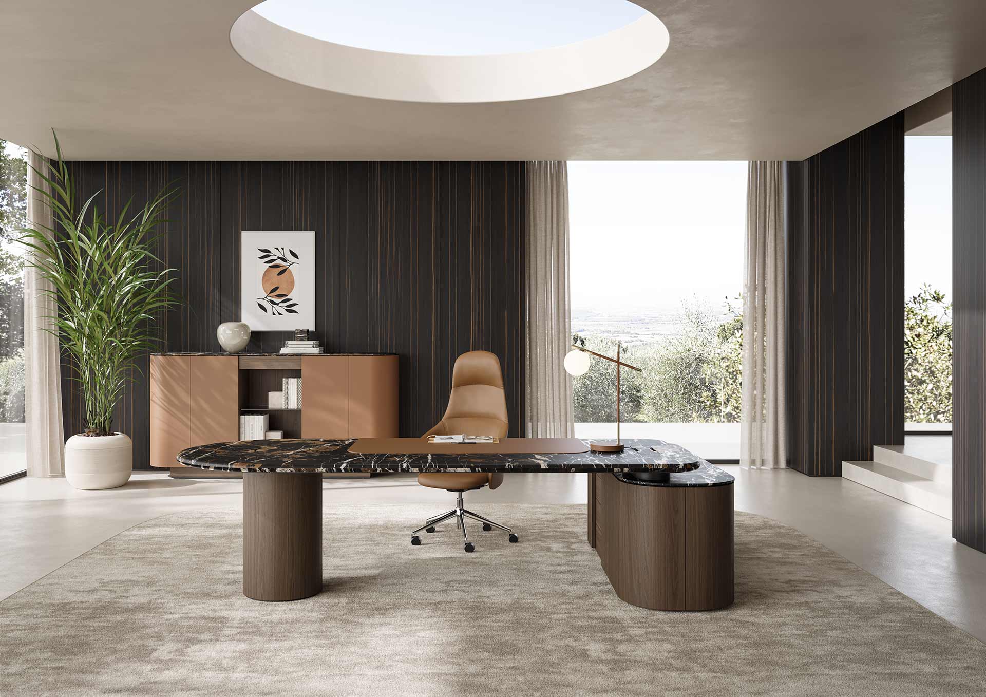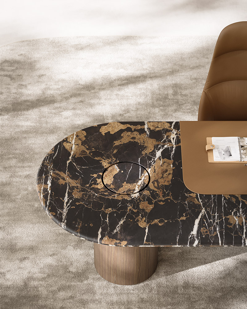 La introducción del mármol, símbolo de lujo atemporal, transforma cada escritorio en un icono de estilo y autoridad. Líneas esenciales y superficies refinadas interactúan con la extraordinaria materialidad del mármol, infundiendo elegancia y prestigio a cada espacio ejecutivo. Cada detalle está cuidadosamente elaborado para combinar estética y funcionalidad, ofreciendo una experiencia exclusiva para quienes buscan un espacio de trabajo que encarne carácter, clase y excelencia absoluta.