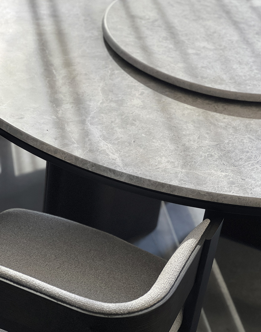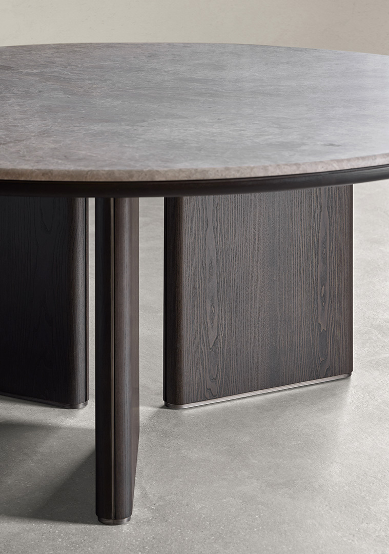 La mesa de comedor Decorte deslumbra con su diseño excepcional, caracterizado por un tablero redondo de mármol, sostenido con elegancia por tres patas dispuestas en posición radial. Sus generosas dimensiones, con un diámetro de 180 cm, resultan ideales para acoger de manera confortable a 8 o incluso 10 comensales, aportando funcionalidad y estilo incomparables a tus reuniones. Esta combinación de materiales hace de Decorte una pieza de mobiliario verdaderamente impresionante. La colección de mesas Decorte, diseñada magistralmente por Francesc Rifé, encarna la esencia del estilo moderno y conceptual en mobiliario. Inspirada en la meticulosa fabricación a medida y en la alta costura, estas mesas ofrecen una versatilidad incomparable. Disponibles en diferentes medidas y formatos, ya sea rectangular o redondo, Decorte juega hábilmente con el número y la posición de las patas, que destacan con sutiles detalles en su diseño. Fabricadas en fresno o con la opción de un elegante tablero de mármol, estas mesas ofrecen una experiencia personalizable con acabados que reflejan la singularidad de cada espacio.