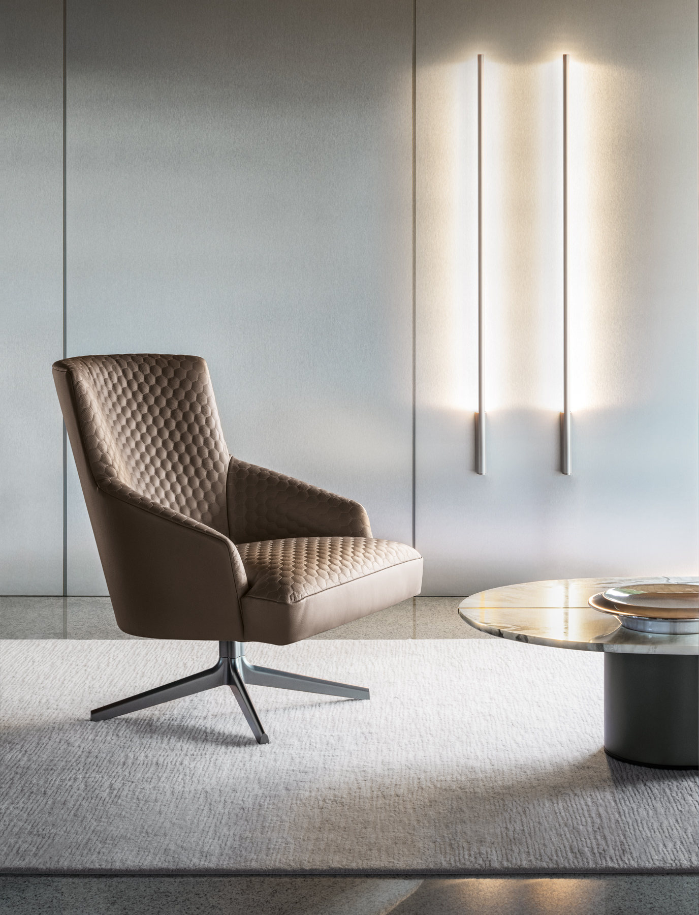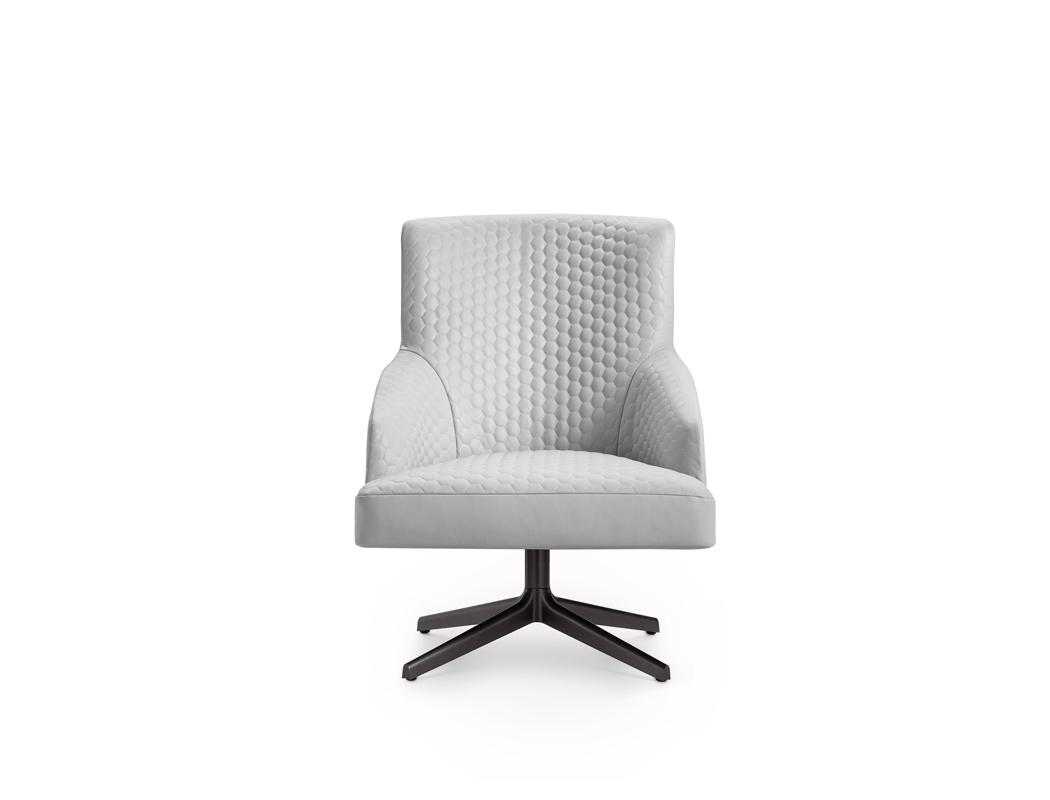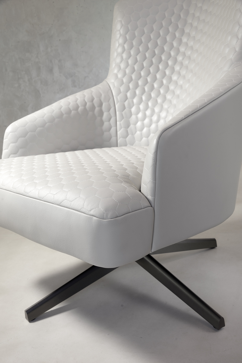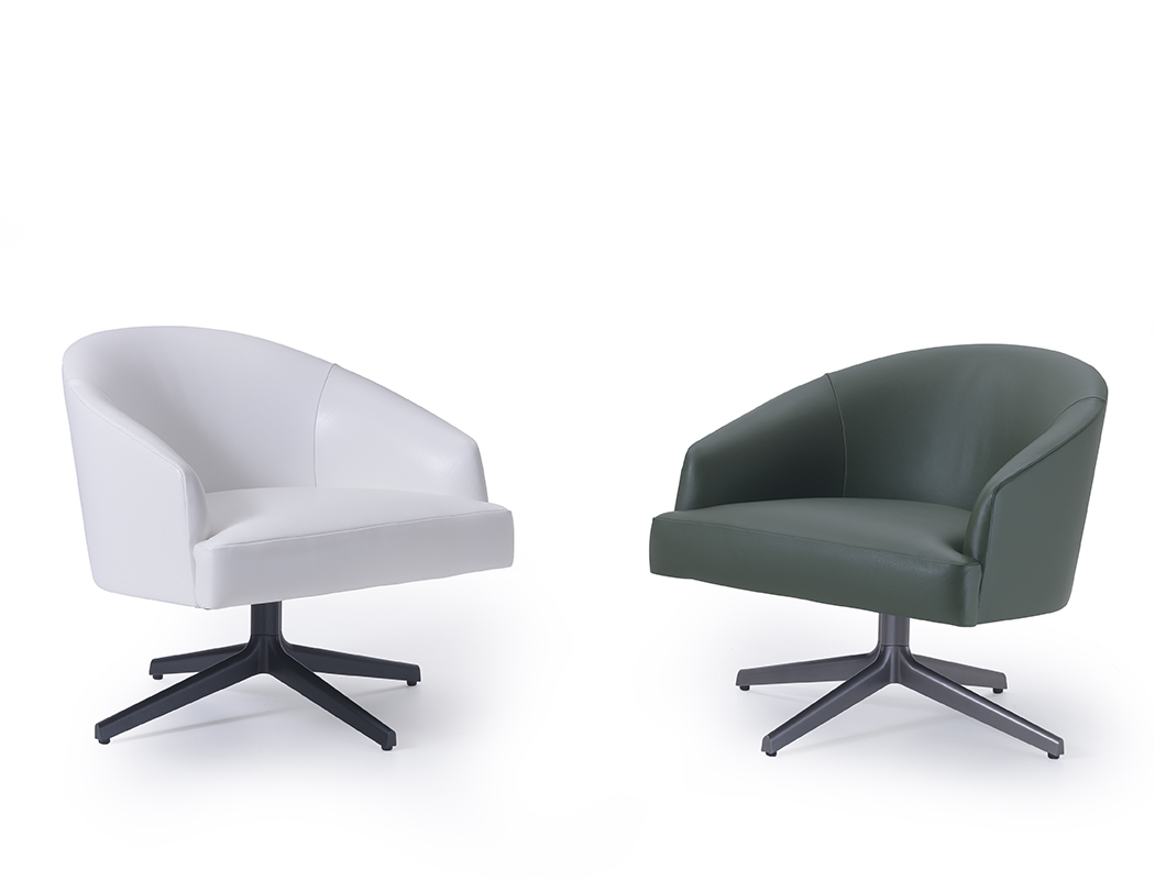 La colección relajante también está enriquecida con un sillón cómodo y envuelto inspirado en el concepto del Bergère con un giro de 4 radios o una base fija en acero tubular curvo y pintado. Su versatilidad lo hace adecuado tanto para la sala de estar como para el área de relajación de las oficinas o pasillos.