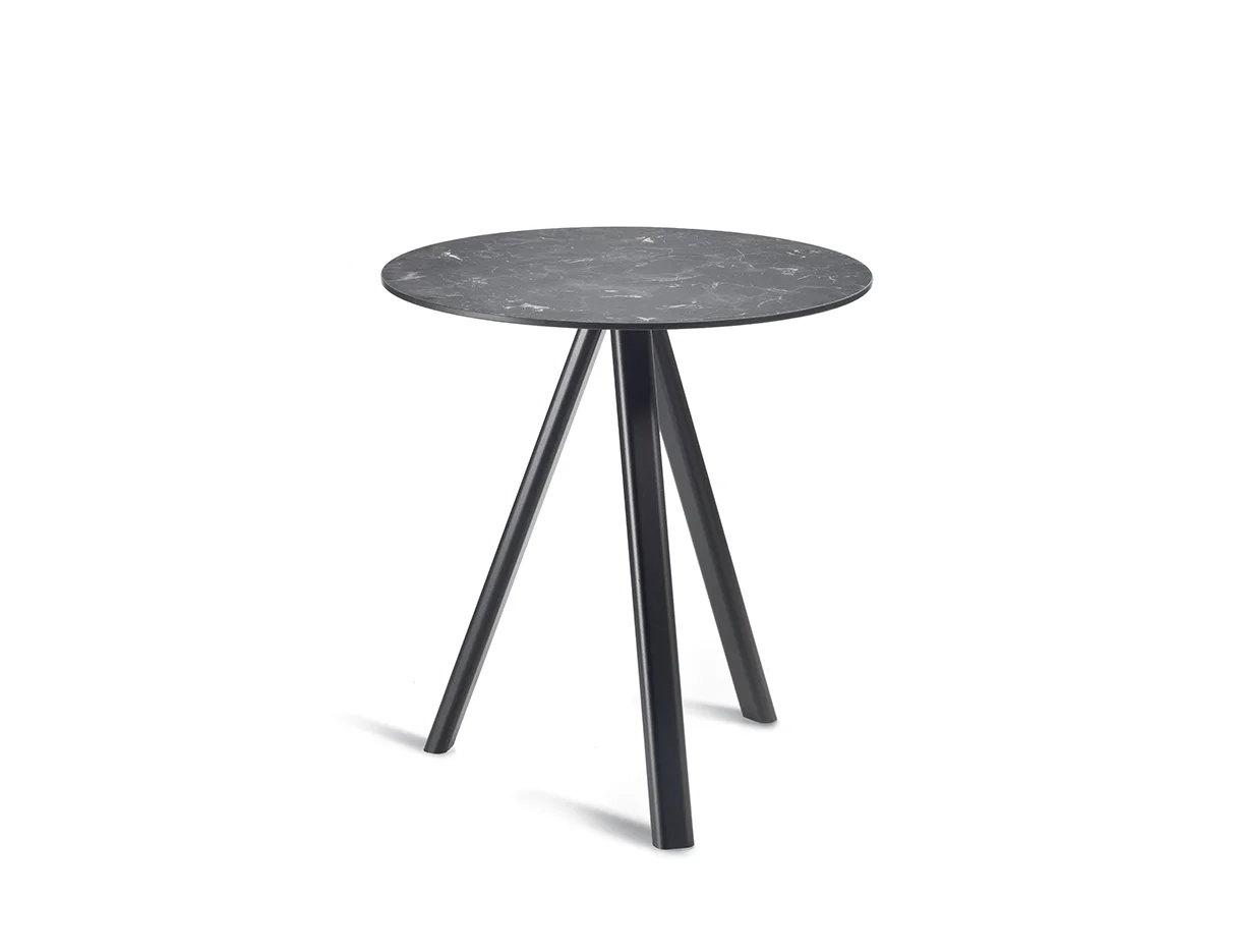 La colección de mesas Norman 3-Pod se fabrica con geometrías básicas para lograr formas distintivas. Disponible con tableros redondos o cuadrados de laminado o Compactop, Norman 3-Pod utiliza una estructura de aluminio de tres patas, disponible en una gran variedad de vibrantes colores.