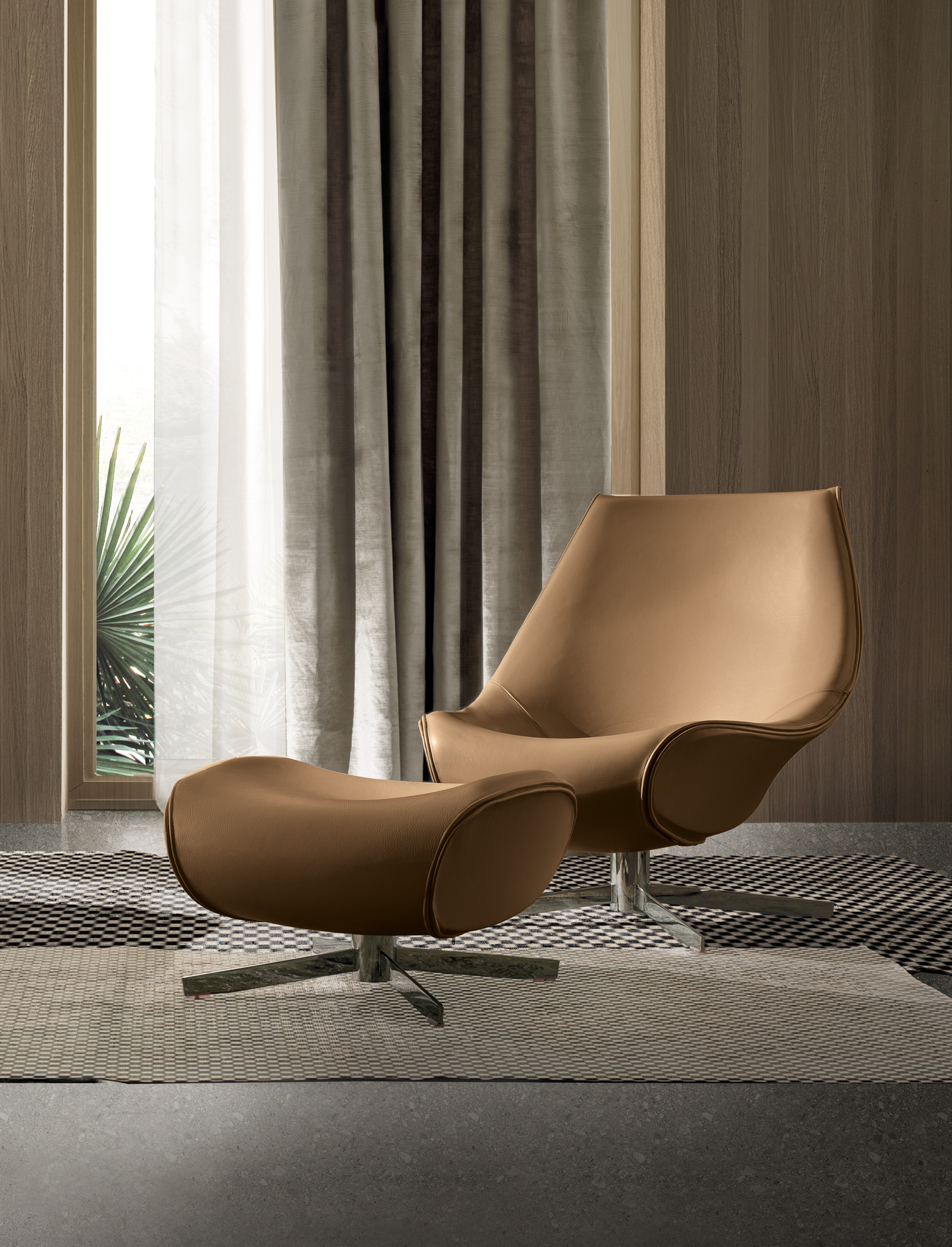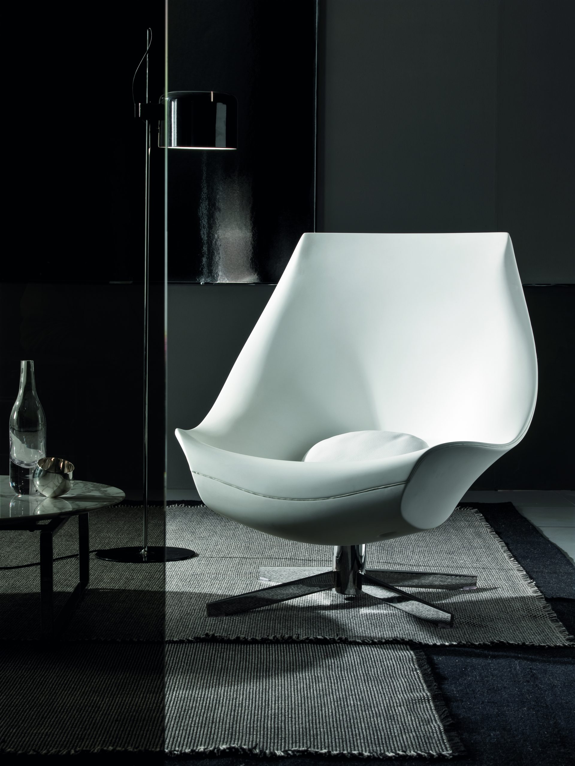 El sillón de ostras es una concha fuerte, tenaz y protectora, un interior sensible, tenso en el desarrollo de formas y al mismo tiempo suave al tacto y envuelto en comodidad. Las líneas de los «músculos» de la carcasa trasera y las facetas en los lados hacen que el cuerpo de la ostra sea dinámico y reactivo, una exclusividad absoluta del diseño. Las coincidencias en los nervios laterales de las dos conchas cóncavas y convexas están subrayadas por el empaque de adaptación a través de las cremalleras, encerradas por los generosos bordes de las costuras.