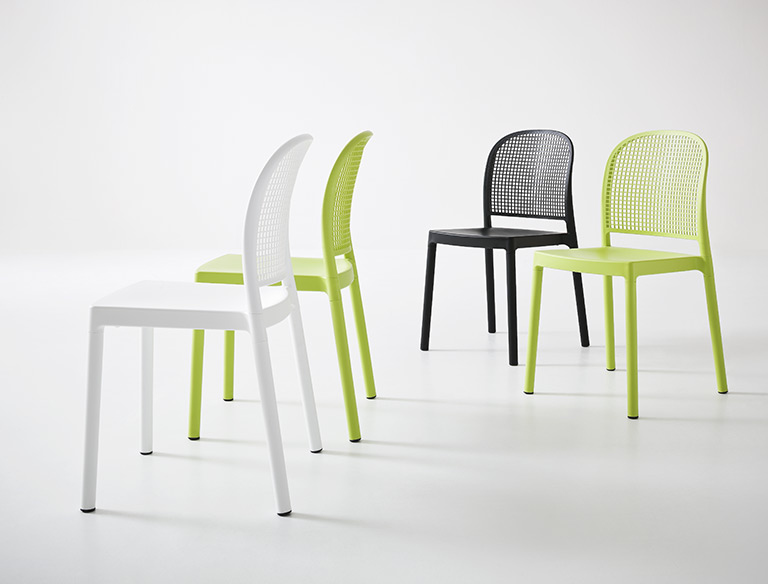 La innovación tecnológica y la investigación exhaustiva en el uso de materiales dan lugar a esta colección de sillas y taburetes, de líneas suaves y diseño contemporáneo. Reconocida internacionalmente por su diseño único, Panama también está disponible con asiento y/o respaldo tapizados.