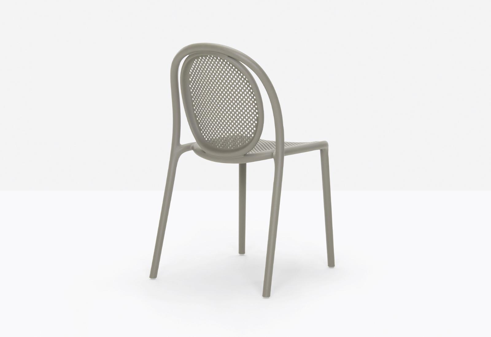 Remind «recycled grey» recuerda las curvas suaves y sinuosas de las sillas de madera de la segunda mitad del siglo XIX. Silla monobloque realizada en polipropileno reciclado: 50% de residuos plásticos postconsumo y 50% de residuos plásticos industriales. La silla y el respaldo se caracterizan por una textura transpirable que contribuye a hacerla airosa y aún más ligera, además de cómoda y envolvente. El respaldo perforado de Remind «recycled grey» puede decorarse con pequeños píxeles de colores hechos de polipropileno, ofreciendo a todos la oportunidad de convertirse en artistas, creando infinitos motivos.