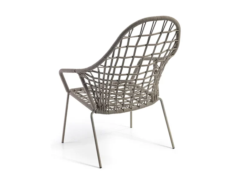 Las sillas Sanela Lounge se caracterizan por su cuerda de poliéster italiana tejida a mano con núcleo acrílico y estructura de acero. Gracias al tratamiento de teflón, la cuerda es resistente a la luz, la intemperie, las manchas y el agua. Con una amplia selección de efectos de color , Sanela permite crear instalaciones de prestigio, tanto en interiores como en exteriores.