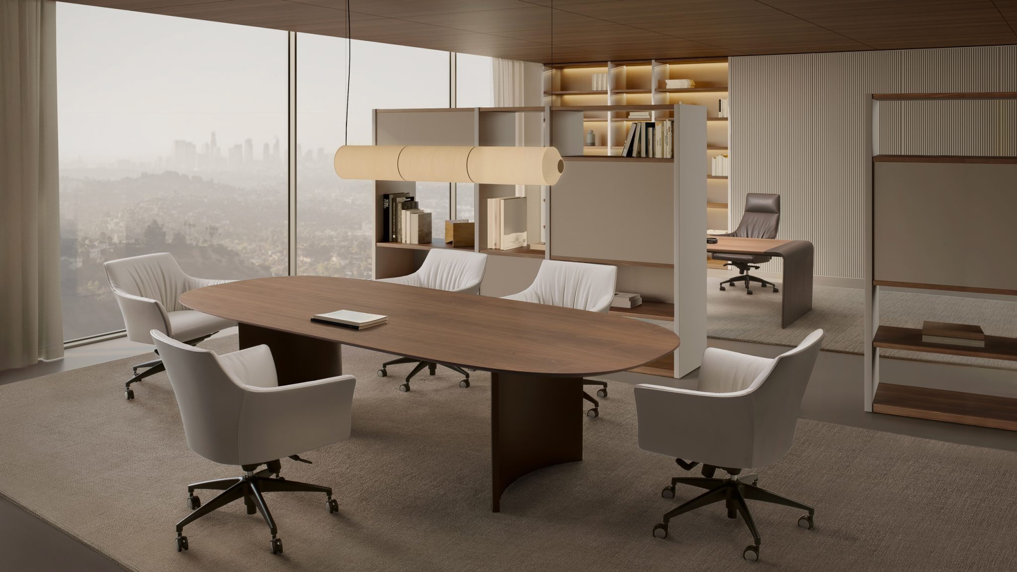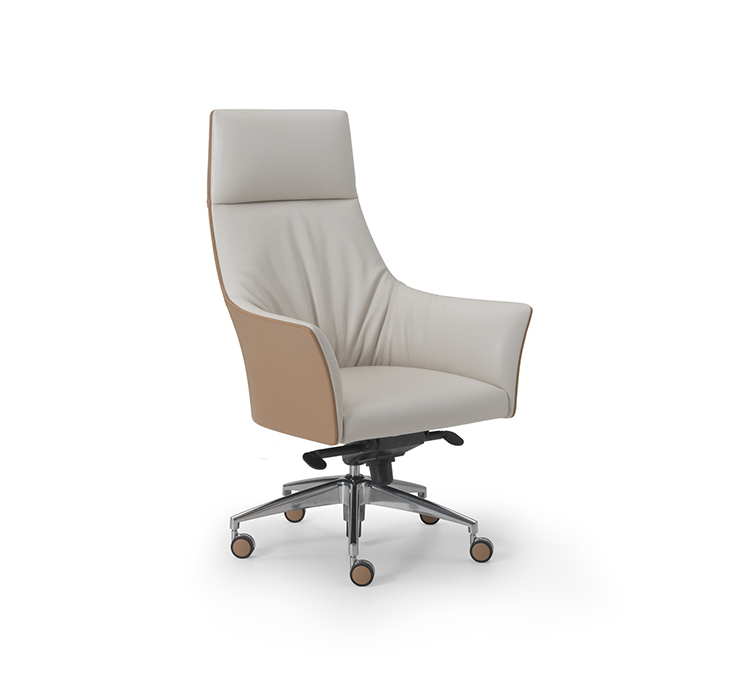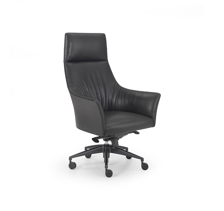 SELLA, cuyo nombre refleja la forma y la materialidad de las sillas de montar para caballos, es una silla de trabajo con una silueta esencial y al mismo tiempo sinuosa, capaz de realzar, gracias a los espesores calibrados, al revestimiento externo de cuero y al suave acolchado interno, la excelencia de la empresa en la artesanía a escala industrial. Un producto que sorprende por su ligereza efímera, líneas femeninas y signo firme.